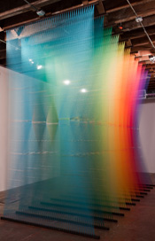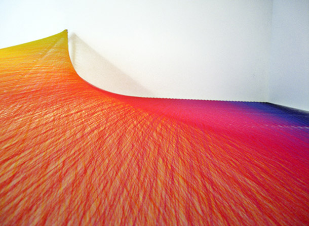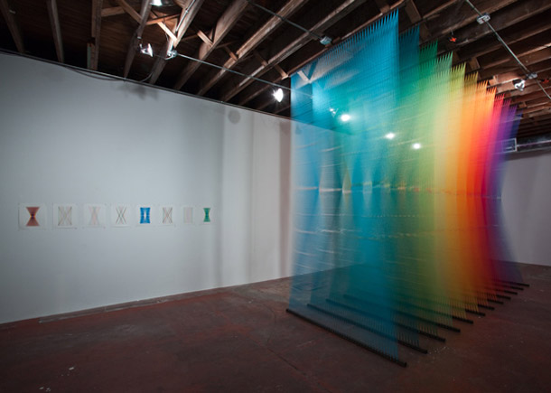 Šarene perceptivno varljive instalacije koje gledate djelo su umjetnika Gabriela Dawea. Živost i snažan kolorizam meksičke kulture utjecali su na umjetnika u razdoblju odrastanja u Mexico Cityju, pa su žarke i raznolike boje prepoznatljiv segment njegova stvaralaštva. U potrazi za kreativnom slobodom, po odlasku iz relativno inhibiranog Meksika, Dawe se seli u Kanadu te eksperimentira i istražuje rad s tekstilom te vezenje. Navedene vještine u umjetnikovoj su rodnoj domovini tradicionalno definirani kao ‘ženska posla’, često čak i izričito zabranjivana dječacima. Baš je zbog toga njegov rad svojevrstan skriven odgovor i kritika na mačizam i muževnost, duboko ukorijenjene u meksičkoj kulturi.