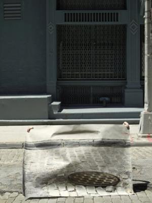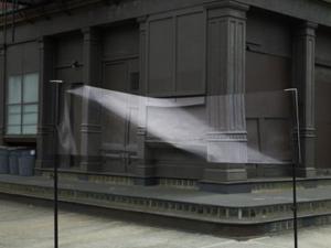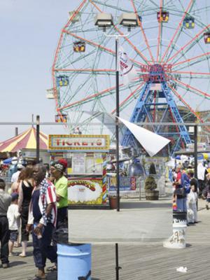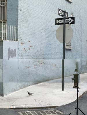 Fred Lebain francuski je umjetnik i fotograf. Jedan od njegovih posljednjih projekata na jednostavan se način igra s njujorškom svakodnevicom, superponirajući „jučer” u danas. Lebain je prošlog proljeća, prvi prvom posjetu odabranim gradskim destinacijama, fotografirao detalje prepoznatljivih lokacija New Yorka. Izradio je velike postere snimljenih fotografija te se, zajedno s njima, nakon nekog vremena vratio na mjesta gdje su fotografije napravljene. Sada je, snimajući iste motive, ali iz veće udaljenosti, isprintane plakate „poravnao” s postojećim lokacijama pa su se elementi na isprintanim fotografijama utopili u poznati okoliš, ostavljajući vidljivima tek savinute uglove plakata ili noge, ruke i traperice modela koji su poslužili kao nosači plakata.