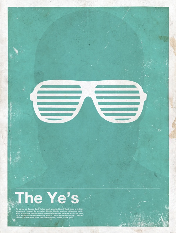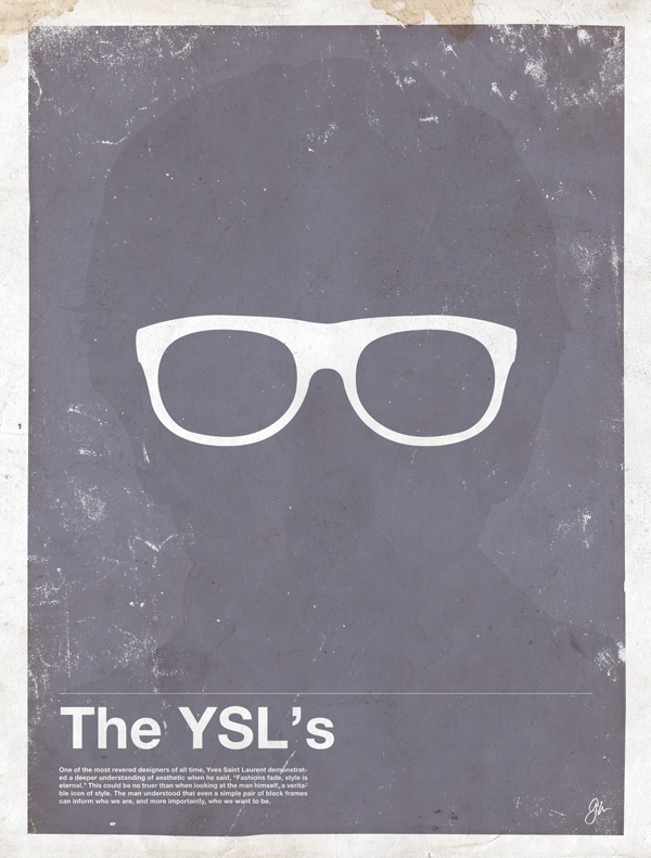 Dizajner Glenn Manucdoc iz studija Moxy Creative, zajedno s ekipom sa stranice EveryGuyed, osmislio je seriju postera Framework, koji predstavljaju najvažnije i najpamtljivije ikoničke muške naočale u posljednjih 100 godina. Jednostavno, ali fantastično ilustrirana kompilacija prepoznatljivih pomagala za vid ili zaštitu od sunca predstavlja taj neizbježni asesoar čak 28 muškaraca, glumaca, izmišljenih filmskih likova, glazbenih zvijezda, umjetnika i ostalih poznatih muškaraca koje teško možemo i zamisliti bez dizajniranih stakalaca na nosu. Uz poster koji crtežom pripadajućih naočala kompletira sve odabrane aktere, uključujući primjerice Johna Lennona, Woodyja Allena, Eltona Johna ili Geordija LaForgea iz Zvjezdanih staza te Blues Brotherse, kolekciju čini pet individualnih plakata s crtežima karakterističnih naočala i sjenom njihovih vlasnika. U tom prestižnom društvu našli su se Johnny Depp, Andy Warhol, Yves Saint Laurent, Gandhi i pjevač Kanye West. Tko su ostali akteri te „slabovidne“ ili suncem ugrožene priče, pogledajte u nastavku ili na službenoj stranici, gdje postere možete i naručiti.