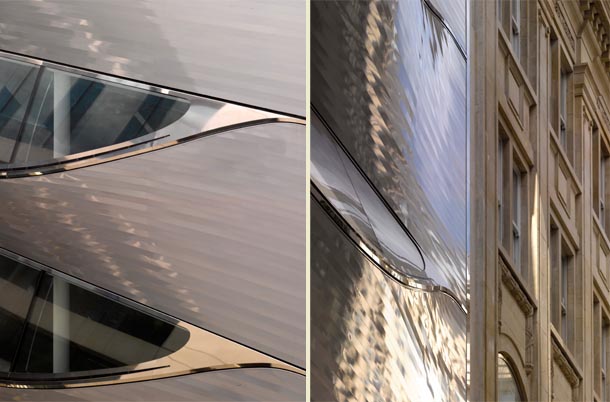 Tako dizajnirana fasada je izvedena zahvaljući PREFA PINICAL sustavu koji je dao jedinstven odgovor na najviše zahtjeve ostvarenja trodimenzionalne organske ovojnice glatke površine s četiri ogromna otvora za doživljaj nebeske vizure i dnevnog svjetla.